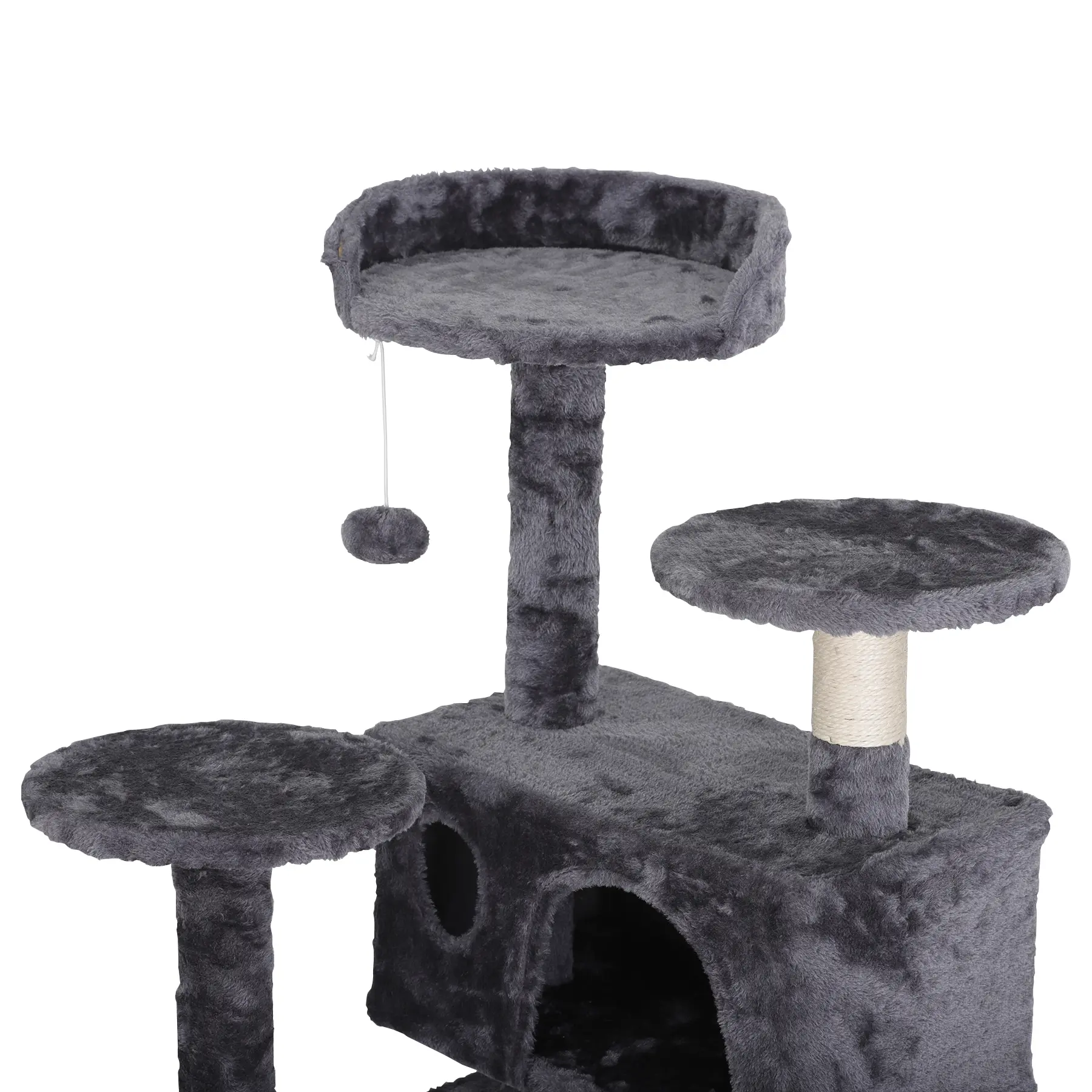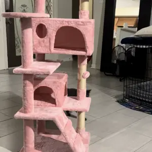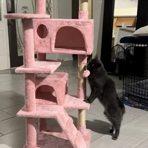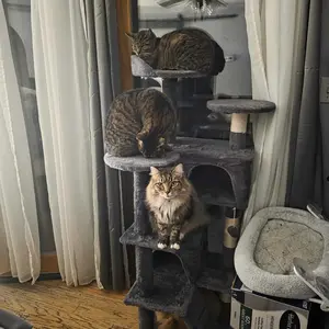 Crafted from premium particle board and soft plush, this cat tree features sisal rope-covered posts for long-lasting scratching and claw-sharpening. Reinforced with natural sisal rope, it’s built to endure your cat’s playful habits for years.