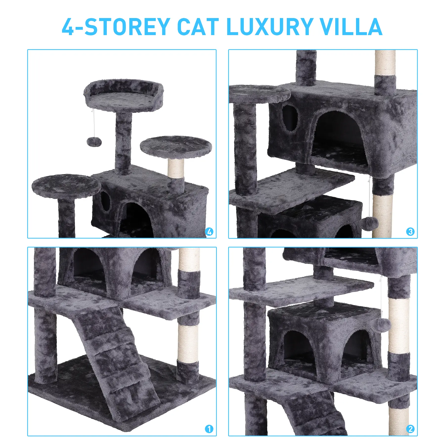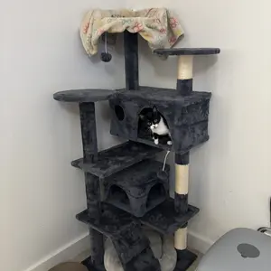 With two cosy hideaway houses and three top perches, this cat tree offers plenty of lounging and climbing opportunities. The multi-level design caters to your cat’s instincts to climb and explore, while the top platforms provide a perfect vantage point for window gazing.
