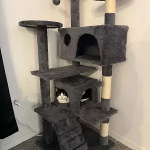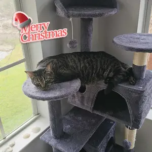 This eye-catching cat tree doubles as a stylish piece of pet furniture, blending seamlessly with your home decor. It comes with all the necessary hardware and tools for quick and hassle-free assembly.