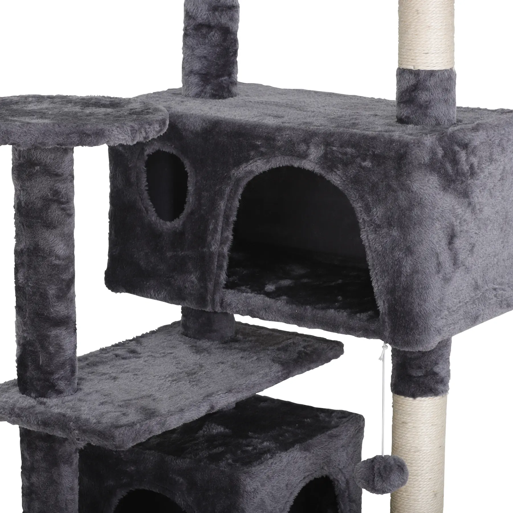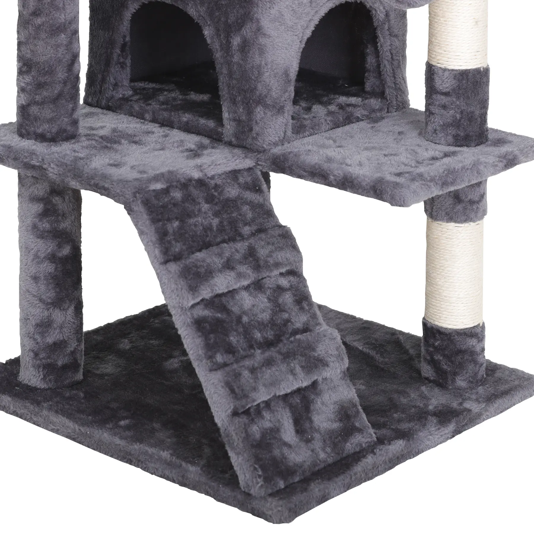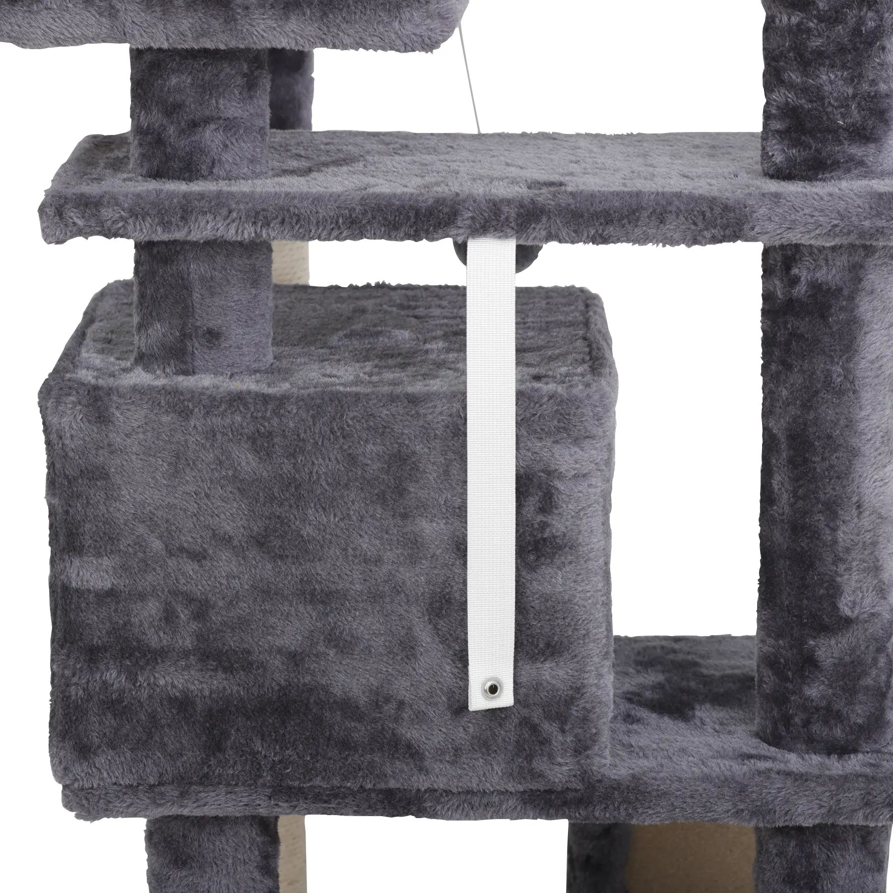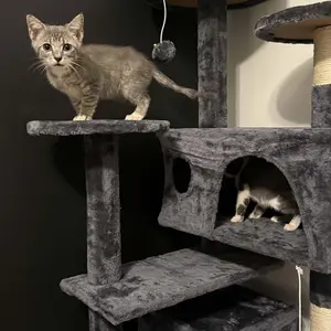 Crafted from premium particle board and soft plush, this cat tree features sisal rope-covered posts for long-lasting scratching and claw-sharpening. Reinforced with natural sisal rope, it’s built to endure your cat’s playful habits for years.
