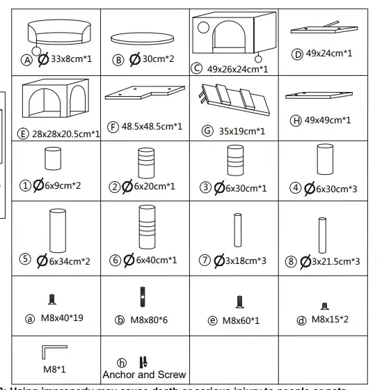 Notice: This cat tree includes 55 components. If you have any questions about the parts, please enter “agent” when contacting us.