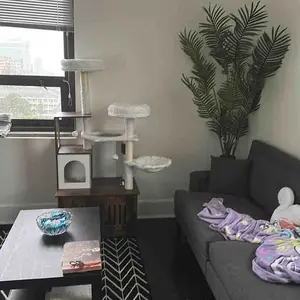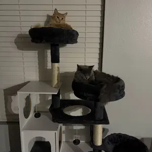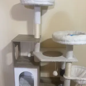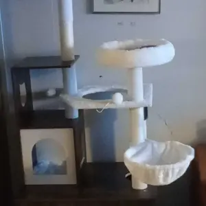 Only giving 3 stars because you just have to love when you buy something “New” but it’s obviously used with stains. Do better! Otherwise it’s a cute cat tree. A bit smaller than expected but does what i need it to
