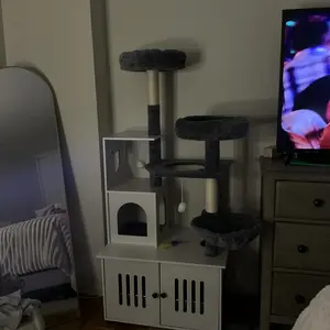 my cat is obsessed with it. i originally only got this to hide his cat box because i was tired of litter in my floor. it’s very sturdy and a little challenging to build by yourself but i 100% would buy it again!