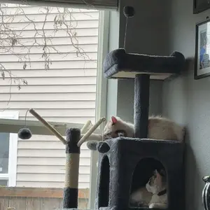 Kitten loved the box it came in as well as helping every step of the way to put the tree together. Sturdy for a smaller cat, wouldn't recommend for cats over 10lbs. Simple to follow instructions. Overall a great buy!