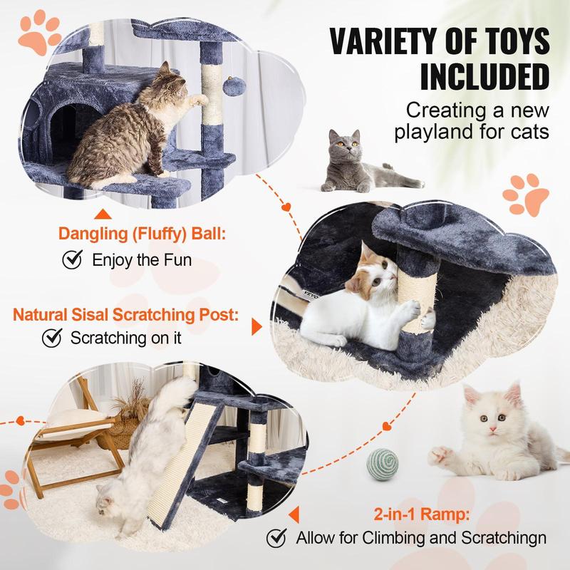 VEVOR Cat Tree for Indoor Cats, TikTokShopBlackFriday, 68.5" Cat Tower with 2 Cat Condos, Sisal Scratching Post, Hammocks, Top Perches, Jumping Platforms and Ramp, Cat Furniture Activity Center with Hang Balls, Dark Grey
