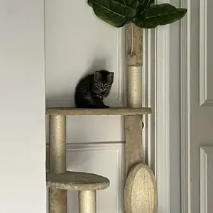 [Unique Leaf Shape Design]: The unique leaf design is not only a simple cat tree, but also a plant ornament, which can be well integrated into home. The cat tree is covered with high-quality 600g skin friendly plush. There is enough space for big and small cats to play.