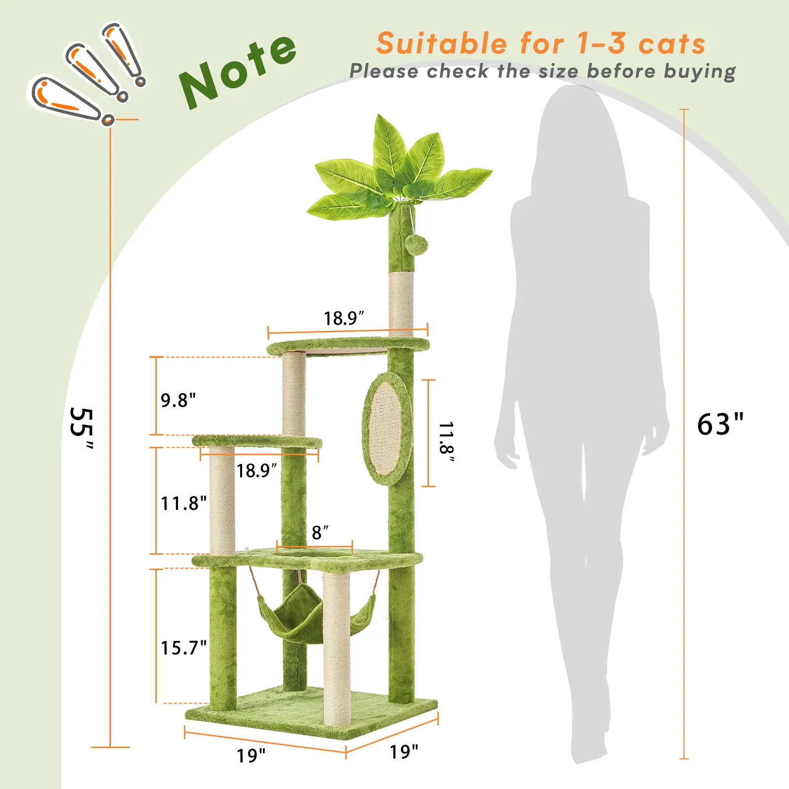 [Easy Assembly]: The easy-to-use cat tree is equipped with all hardware, tools and detailed graphic descriptions, which can be easily installed. Versatile style decor your space easily while satisfying the cat to play. Suitable design make your cat more like a member of the family.