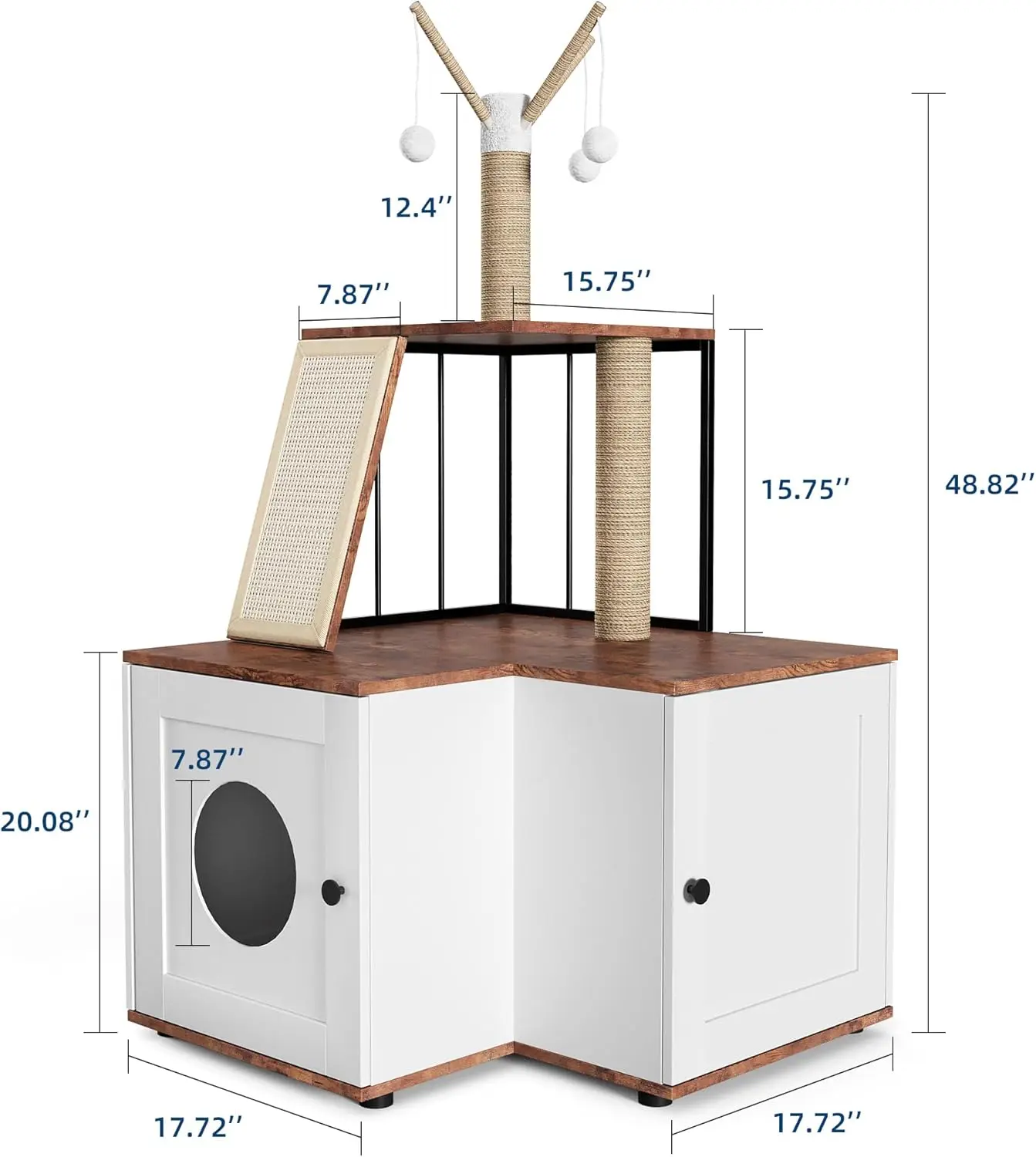 【Easy Access & Hassle-Free Cleaning】The front-access doors of the cat litter enclosure allow for quick maintenance, also make deep cleaning a breeze. This all-in-one litter box enclosure and cat tower is designed for convenience, keeping your pets