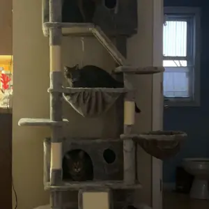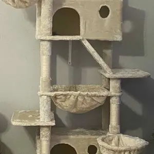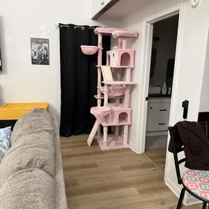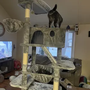 ăCat CondoăThe cozy bedroom within the cat tree is a testament to comfort and security. Enveloped in sumptuous plush materials, it exudes an air of warmth and tranquility. This secluded haven offers your cat a private retreat, where they can unwind and slumber in peace, shielded from the commotion of the outside world. The soft, velvety lining caresses your cat's body, ensuring a restful and rejuvenating experience.