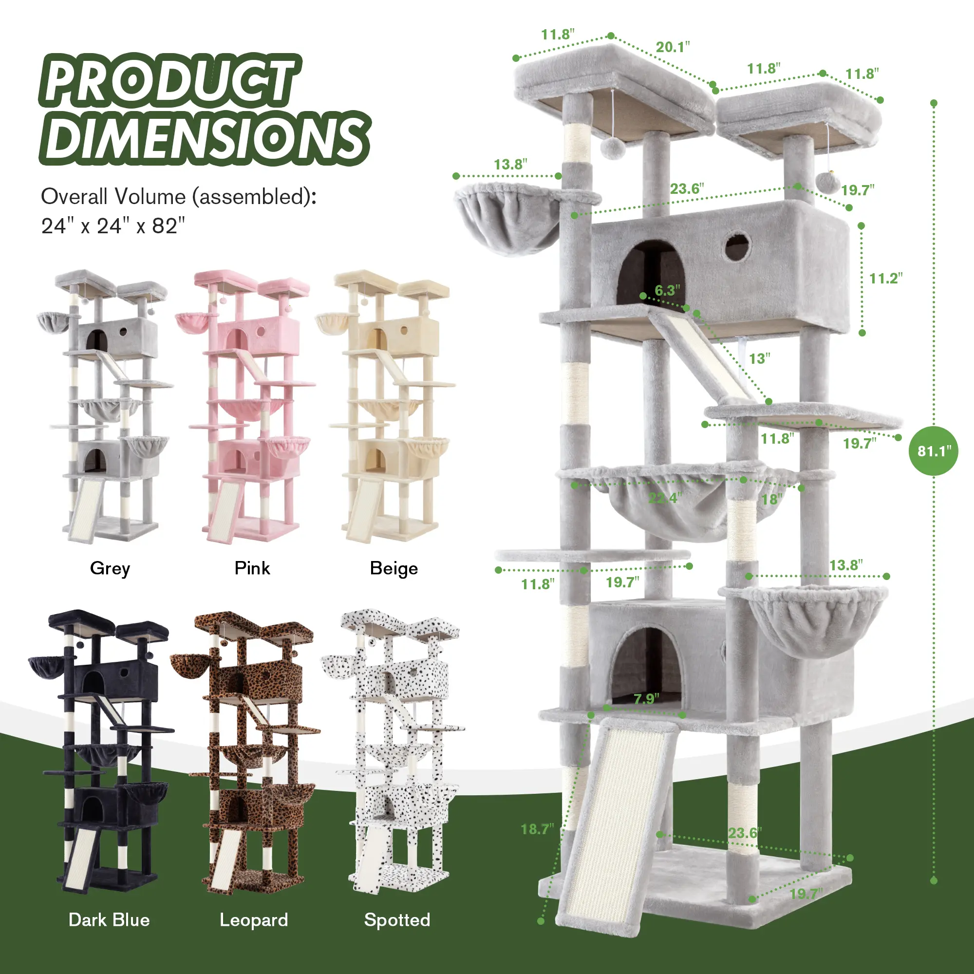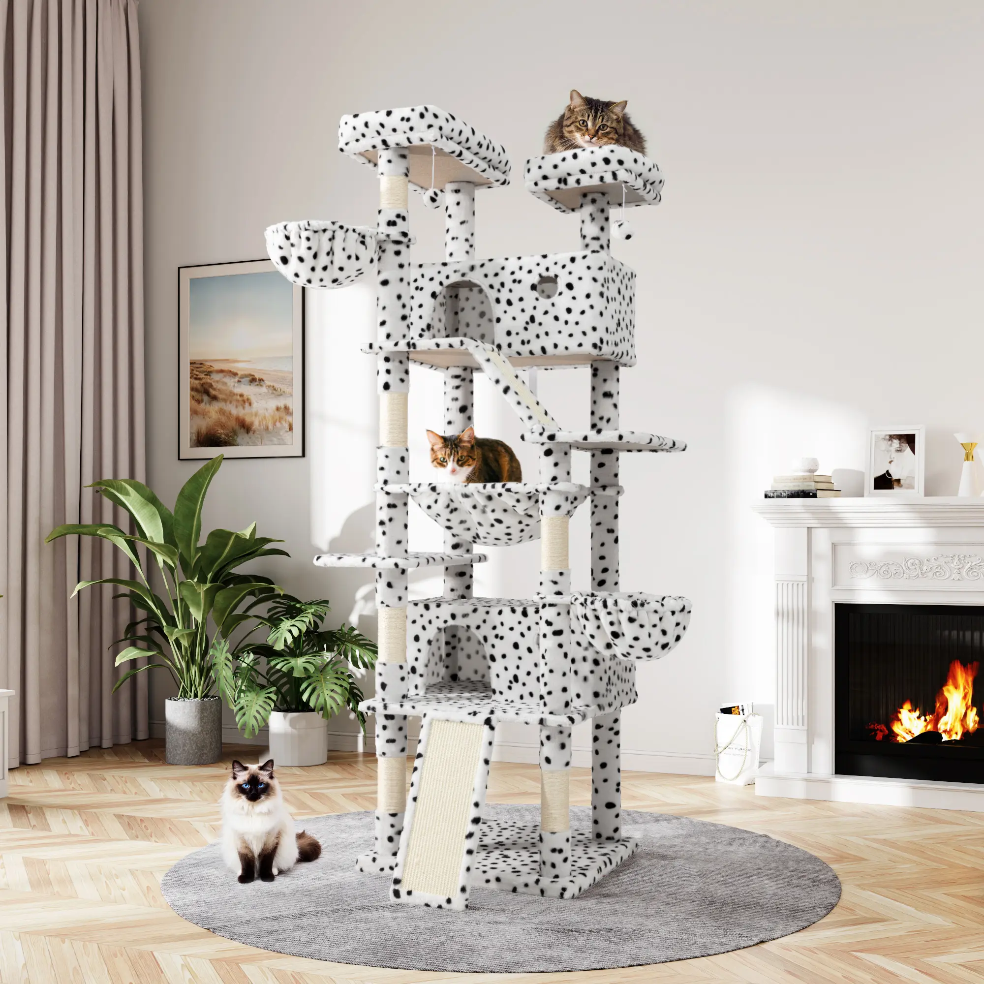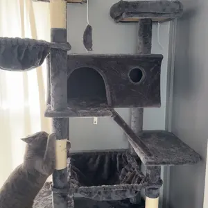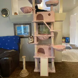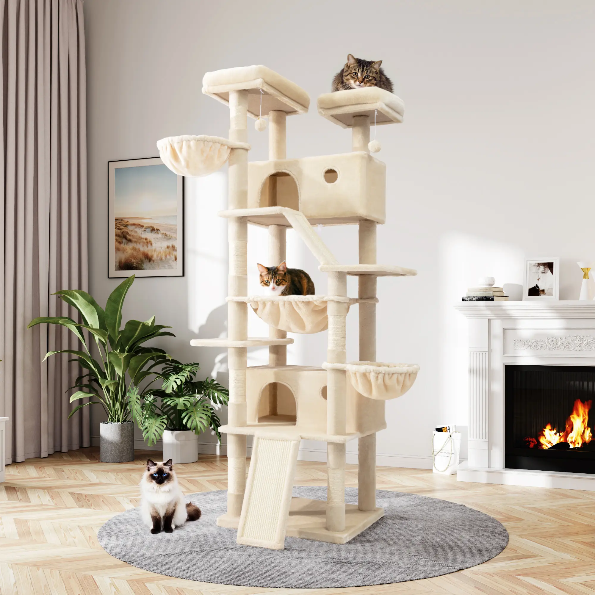 【Big Hammock】The relaxing hammock, a unique and captivating feature, adds a touch of whimsy to the cat tree. Suspended with precision, it offers your cat a novel way to unwind. The hammock's durable yet supple construction allows for a gentle sway, mimicking the sensation of being cradled in a gentle breeze. It is the perfect spot for your cat to indulge in leisurely moments, soaking up the sun or simply dozing off in a state of bliss.