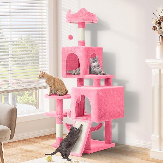 ·ăMULTI-LEVEL FUNăThis modern cat tree is 54 inches tall and can accommodate multiple cats playing or resting at the same time. With ample space for activities, your kittens and adult cats can unleash their natural instincts to scratch, climb, play, exercise and sleep, stay content.