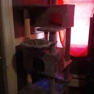 【Stable & Space Saving】This cat tree only takes up an area of 50x50cm, so it can fit even in smaller spaces. At the same time, it provides a lot of vertical space, which can accommodate 3-4 cats playing at the same time. For safety reasons, we recommend that you install the included anti-tilt device to secure the cat tree to the wall, preventing it from tipping over.