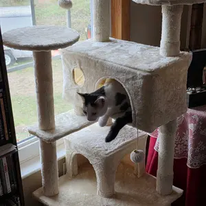 【Multi-function Design】This Cat Tree is an ideal playground for your feline friend! With three climbable platforms, your kitten can unleash their inner adventurer and explore to their heart's content. And when it's time to rest, the two cozy cat condos provide a private, safe and warm space for your cat to curl up and relax.
