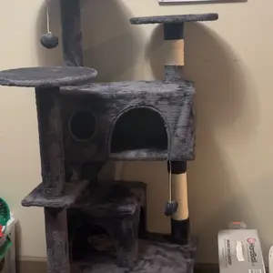 【Stable & Space Saving】This cat tree only takes up an area of 50x50cm, so it can fit even in smaller spaces. At the same time, it provides a lot of vertical space, which can accommodate 3-4 cats playing at the same time. For safety reasons, we recommend that you install the included anti-tilt device to secure the cat tree to the wall, preventing it from tipping over.