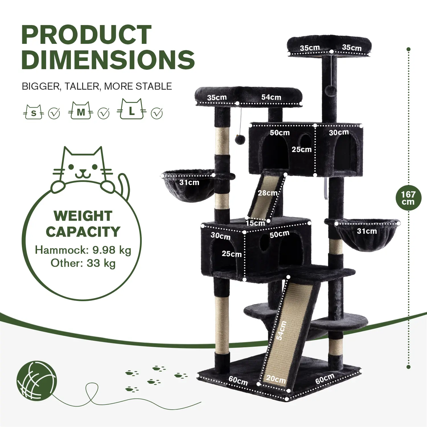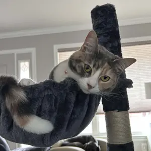 Would have put a 5 star if the circle hammocks were a bit bigger but the rest is still big cat certified. He’s 18 pounds (on a diet got him like that) and it held good without strapping it to the wall yet. I even sat on the top and it’s was fine😂.