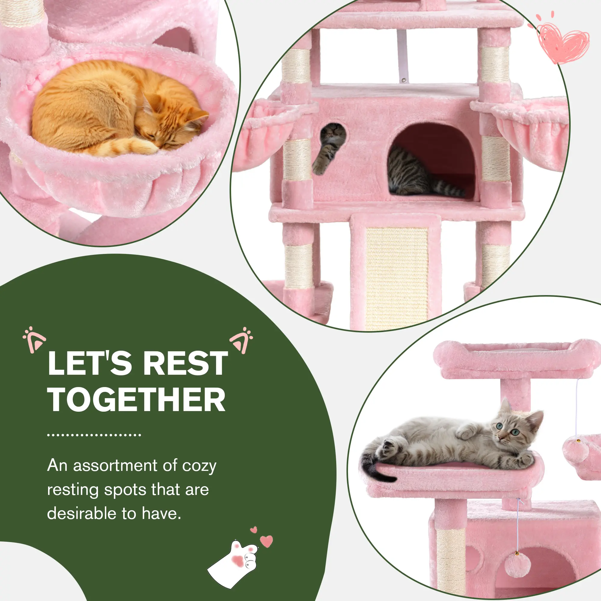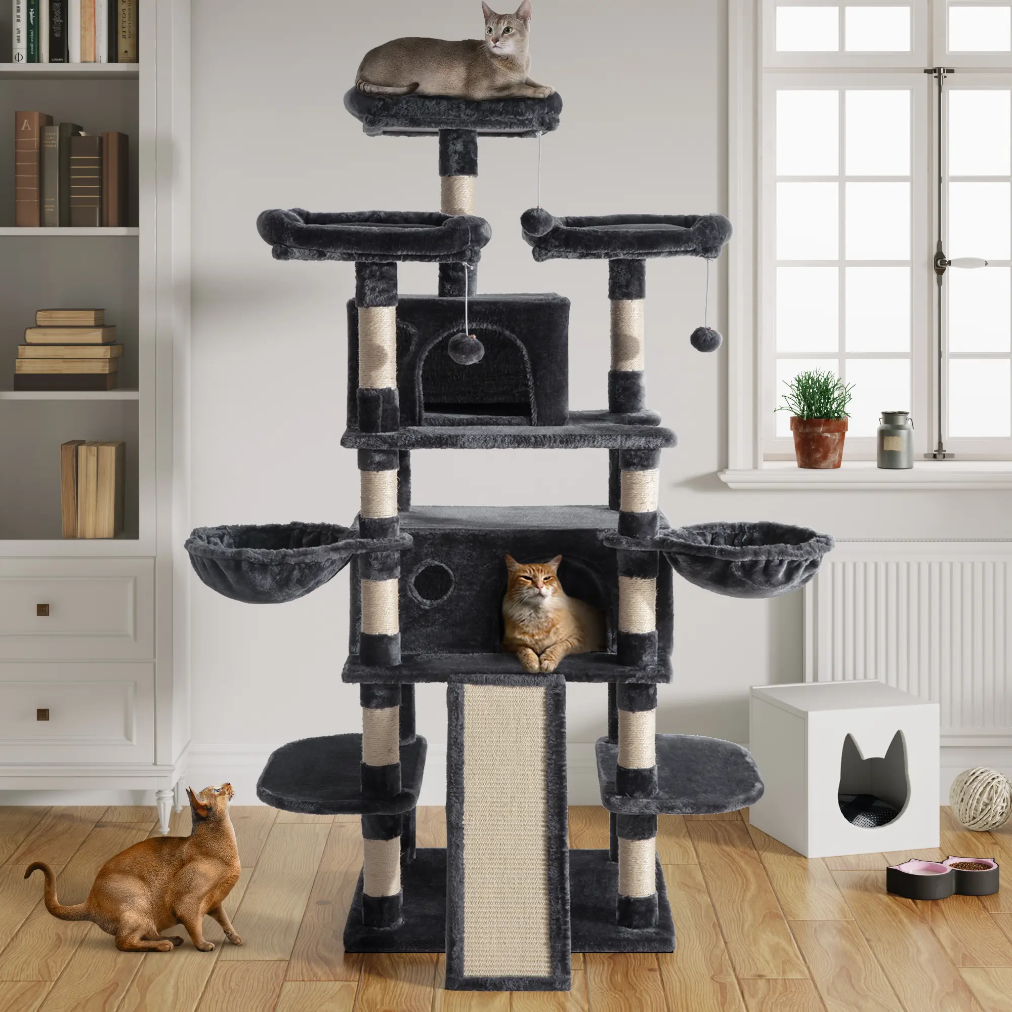 LOVE this cat tower!! They are serious when they say heavy duty. I have 6 cats all together and 2 big boys and they are all over this thing. It’s cute, durable and perfect for multiple cats.