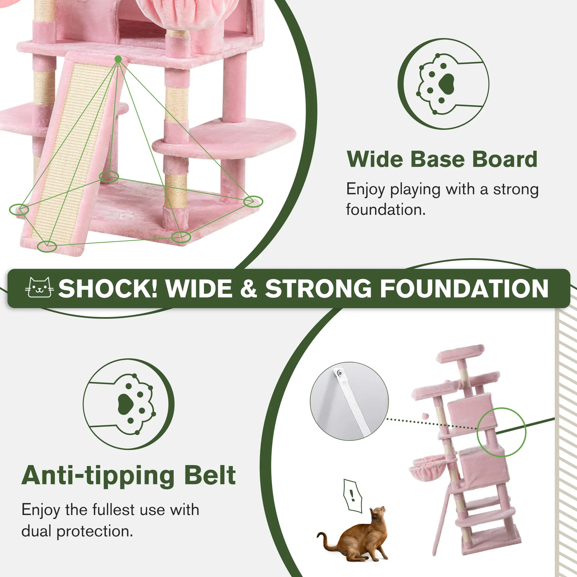 This tree exceeded my expectations. It's perfect for my 2 smaller cats and they have plenty of places to sleep and play. Not so roomy for my big girl but these 2 love it! Very soft too. My only complaint is that screwing the posts in the houses was a bit difficult