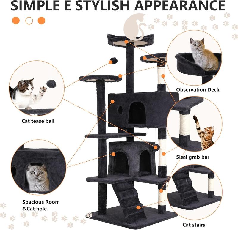 😸【Easy to Assemble & Worry-Free After-Sales】 Our Cat Tree has equipped with detailed graphic instructions for hassle-free installation,you can be installed it easily in few minutes! Don't worry about assembly of our cat condo! If you have any questions for our cat tower, please feel free to contact us,we will come back to you within 24 hours!