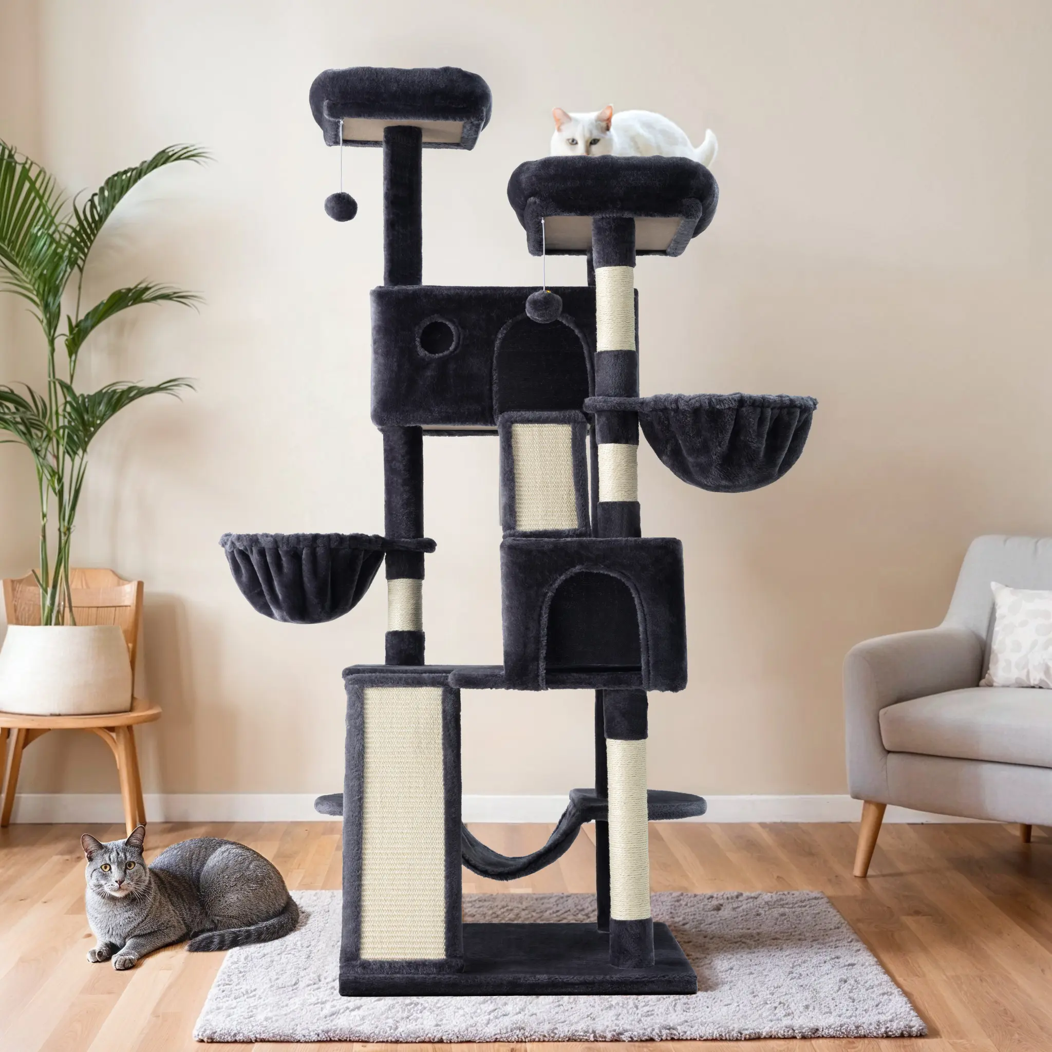 My cats absolutely love this tower. Even the larger cats can easily climb to the top. Seems very durable and can be anchored to the wall as well.