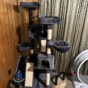 great price, it’s a great cat tree, it didn’t take me long to set up (make sure you listen to the instructions) and it’s really sturdy! i have 7 cats and all of them can find a comfortable place on this cat tree where they fit! it did come with dirt/stains, i mostly got it all off, still came dirty.