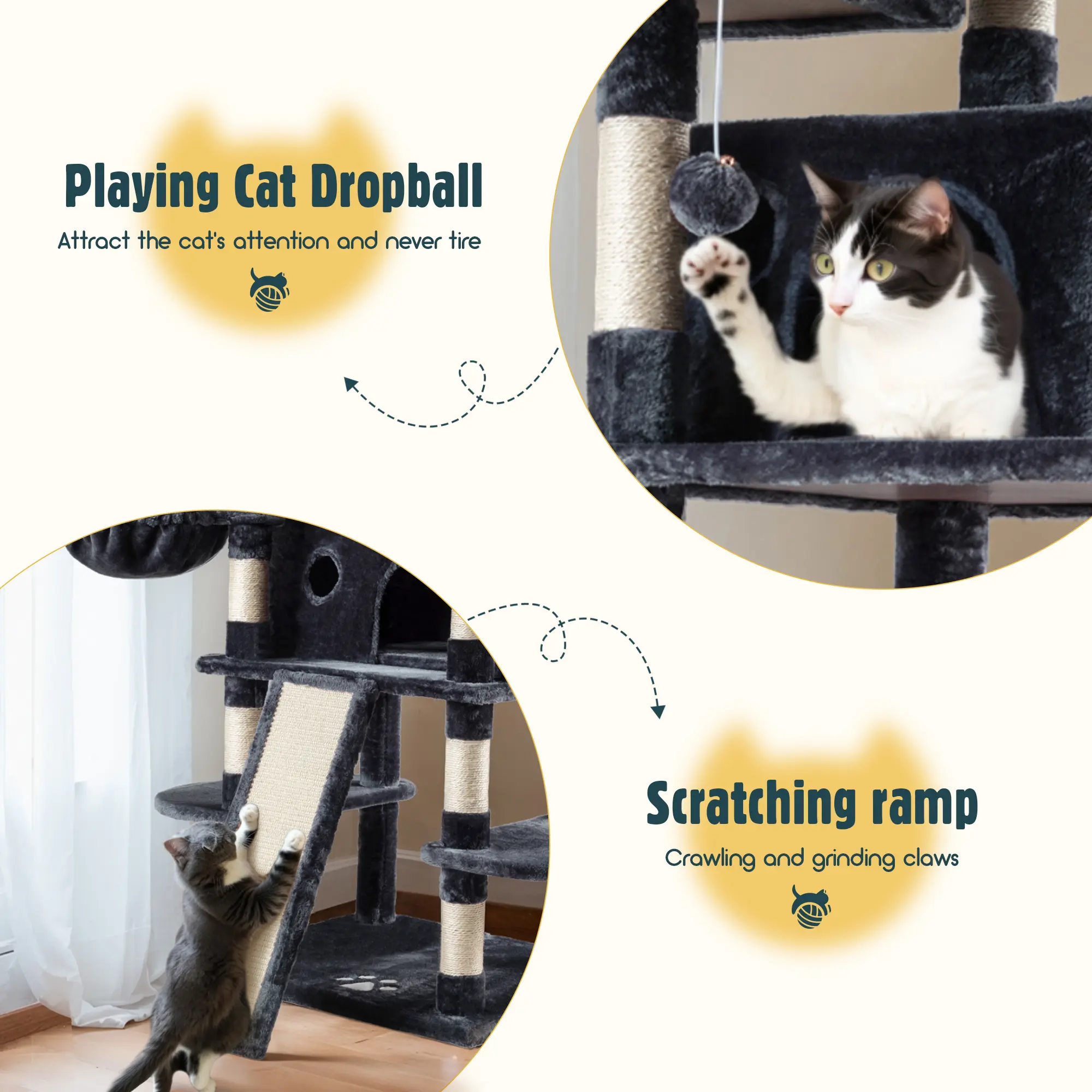 My cats love this tower. They all have a bed or a hide out.