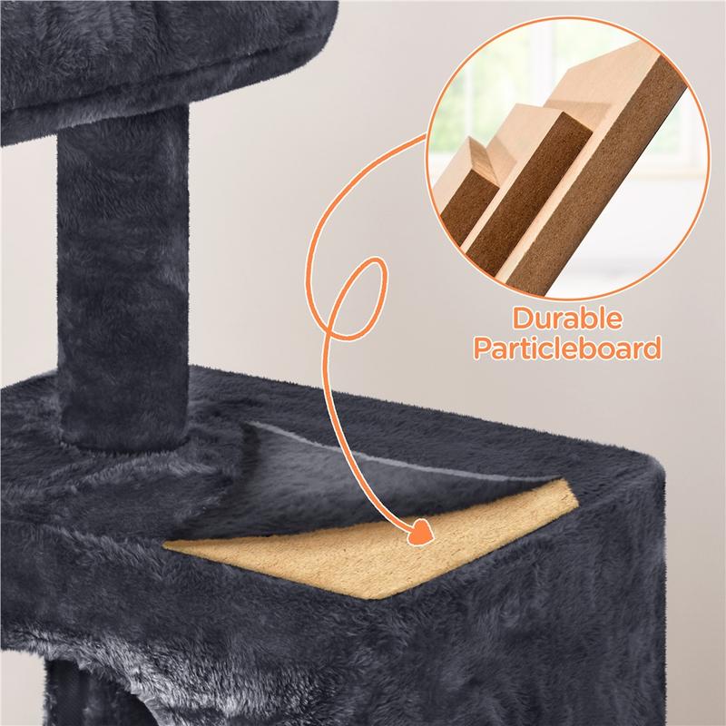 1. Sturdy and Snug: Crafted from CARB P2-compliant particleboard, plush fabric, and sisal rope, this multilevel cat tree offers both strength and comfort—perfect for play and rest. Your adorable cats will be smitten