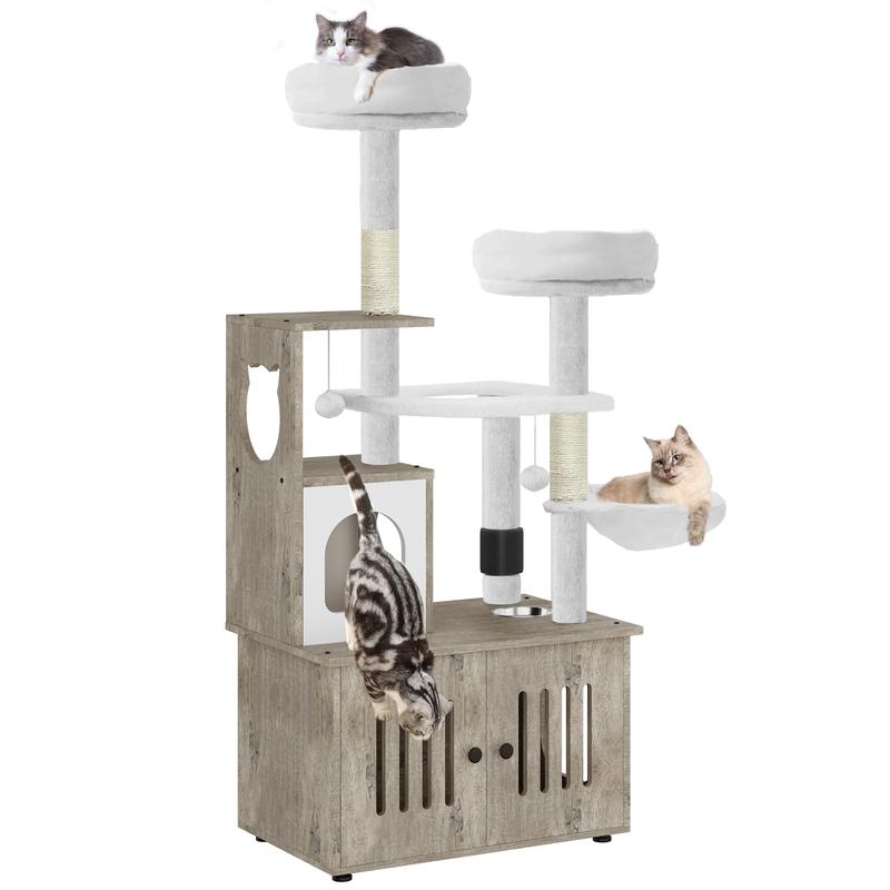 [2-in-1 Cat furniture] : This innovative cat tree comes with a hidden litter box for a versatile space that meets all the needs of your feline companion; It is a designated area for your cat to easily go to the toilet, rest, sleep and eat.