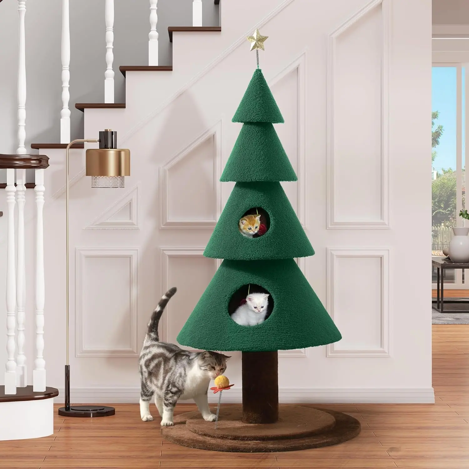 Christmas Tree Decor: This cat climber adopts a unique Christmas tree shape that can be used as not just a cat climbing tree but also be placed in different areas such as the living room, bedroom, and balcony as Christmas decoration, creating a festive atmosphere
