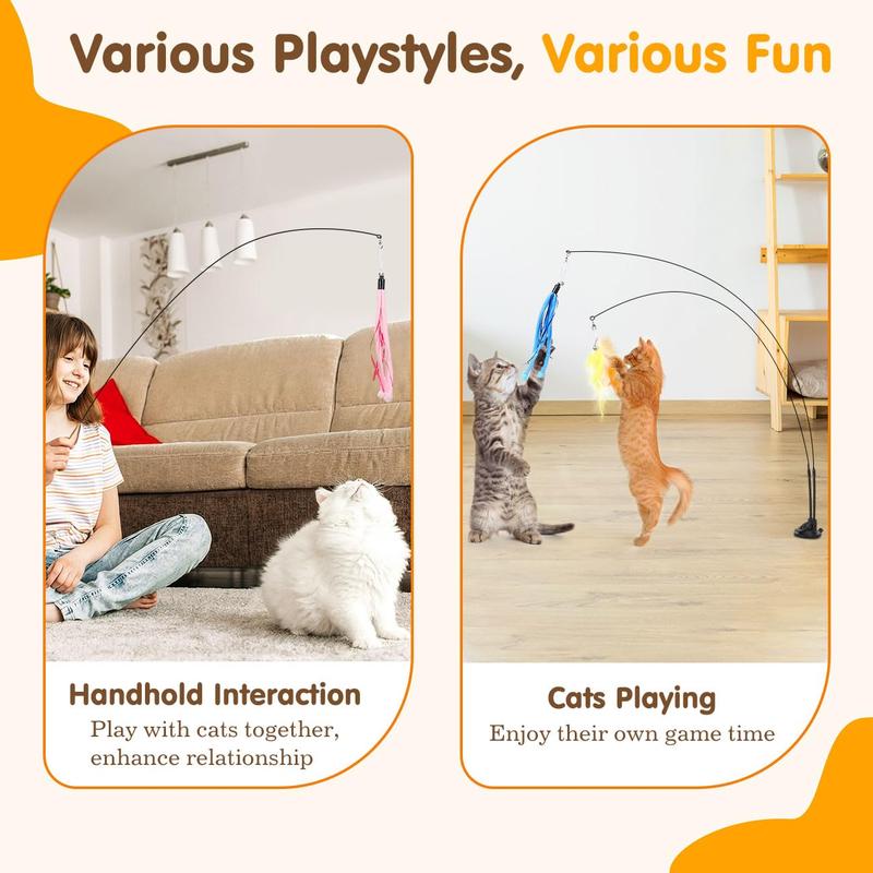 【Perfect Gift For Lovely Pets】 Package content: 2 x steel wire cat teaser, 1 x suction cup, 7 x variety feather toys, which is vivid and exciting pet toys for indoor cats. Whether a birthday gift or a holiday gift, the interactive toys are perfect as a gift for your beloved cat, enhancing the relationships between you.