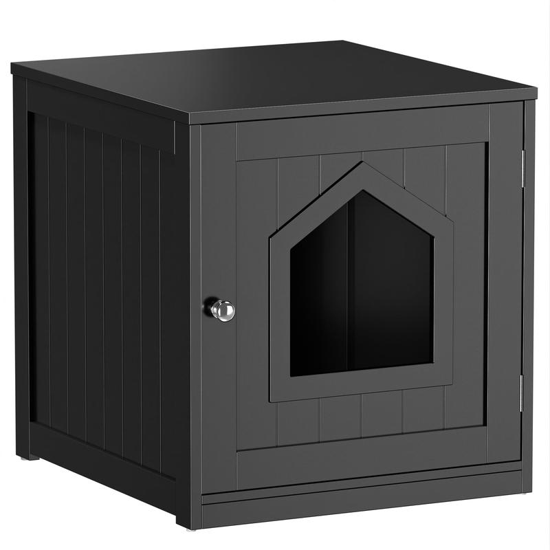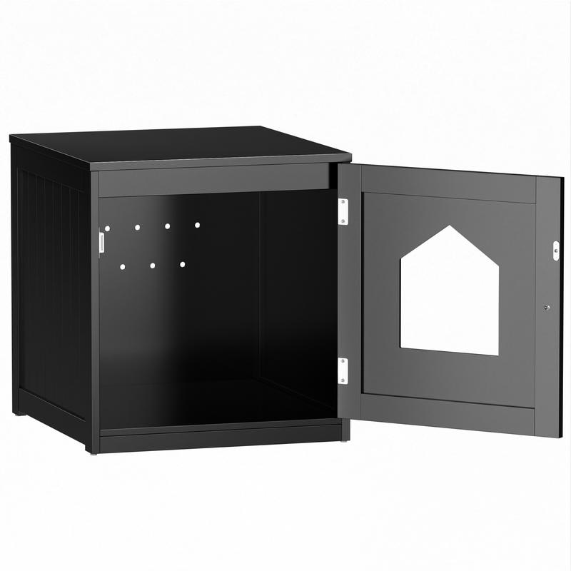 9 pre-cut holes in the back panels allow proper air flow to keep the inner dry and fresh. A wide magnetic door design is made for easy access and cleaning. It Accommodates a Standard Size Litter Box.
