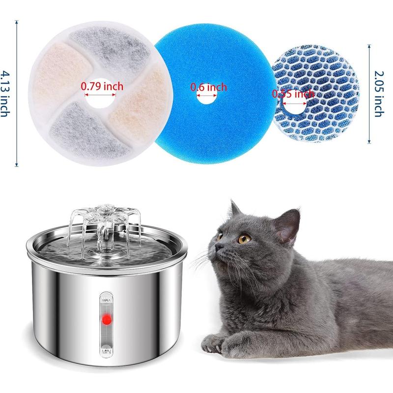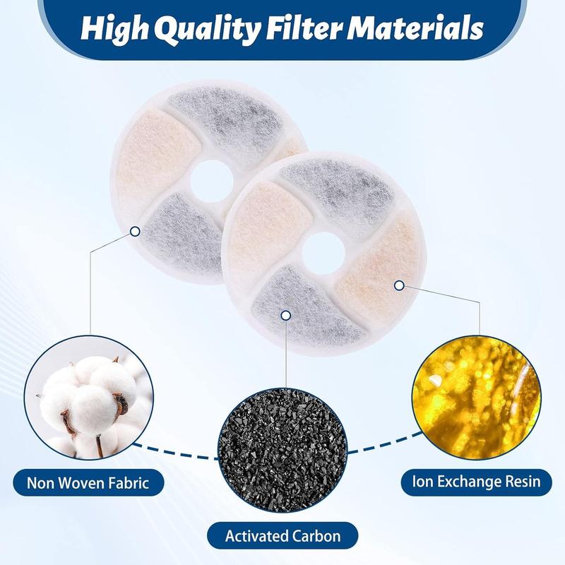 ·【Cat Fountain Filter】This cat fountain filter is composed of sponge, activated carbon, and ion exchange resin, which can effectively filter out impurities, remove odors, soften water quality, improve taste, and make every bite of the cat clean and sweet. this greatly reduces the risk of pets suffering from gastrointestinal and urinary system problems.
