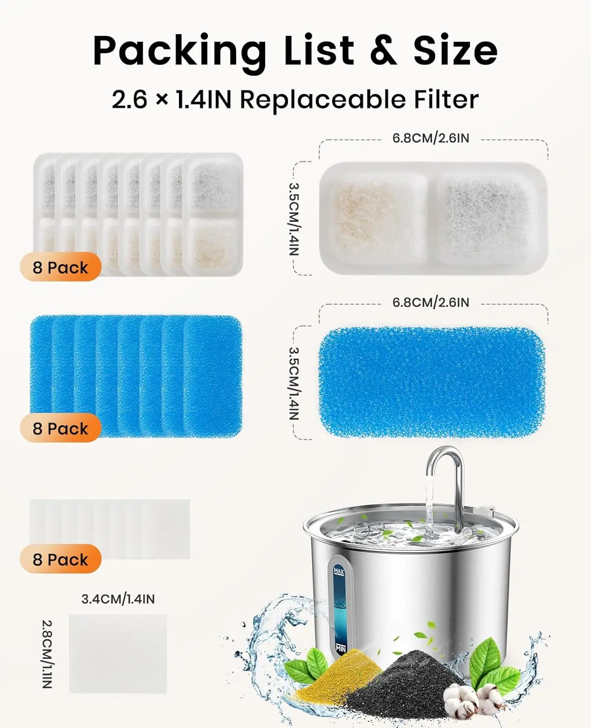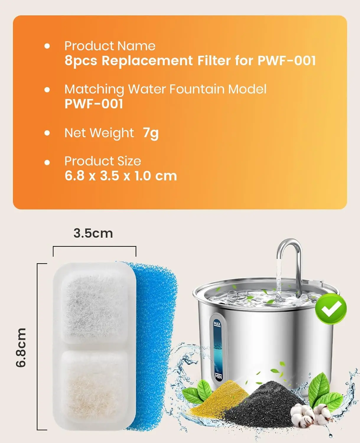 the white sponge is too thick for the filter for some reason which is odd because i have the corresponding fountain. bought these filters before on here and they were a perfect fit in the past. but nevertheless i just cut the white sponges to make them slimmer and it worked perfectly.
