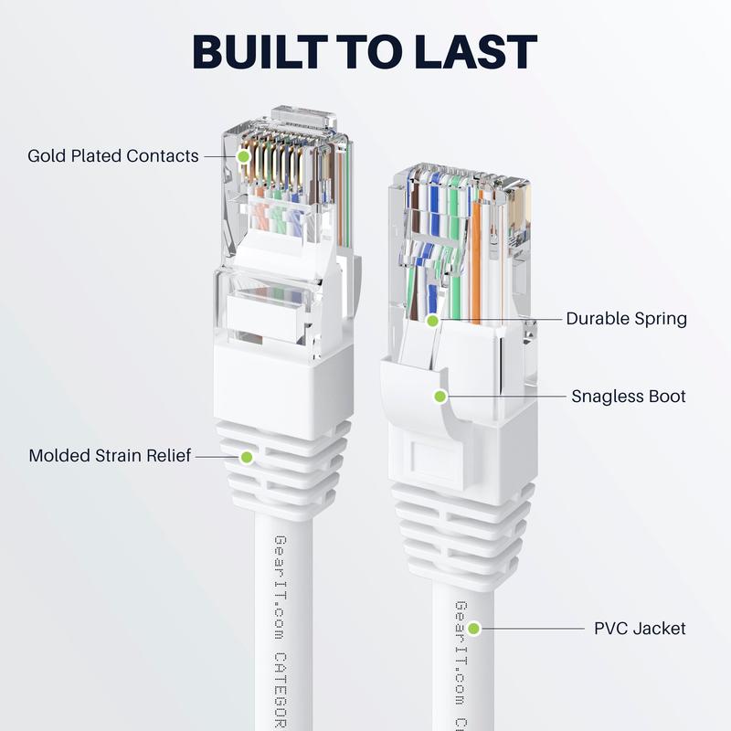 ·EXTRA LONG CAT6 CCA INTERNET CABLES - Our GEARit Internet LAN Cables come in 25ft, 30ft, 35ft, 40ft, 50ft, 75ft, 100ft lengths and black, blue, white color cable. Search on Amazon for GEARit Cat6 Internet Cables to find all our Cat6 Network Cables. All GEARit LAN Network cable wires come with a limited lifetime warranty.