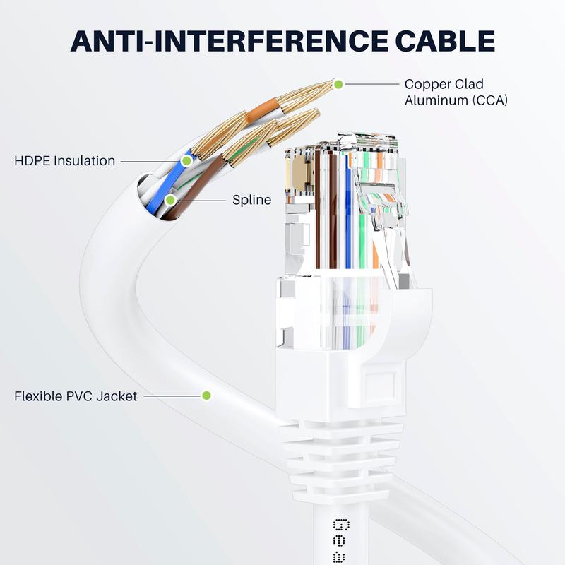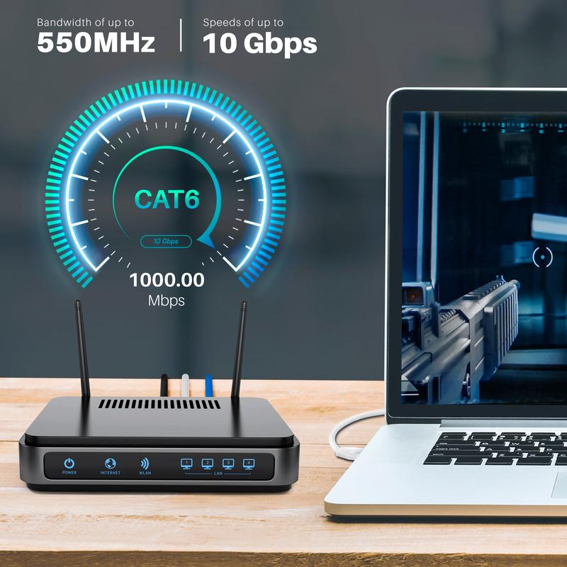 ·CATEGORY 6 ETHERNET CABLE - Our copper clad aluminum LAN network wire cables are unshielded twisted pair utp cable wire design for economic ethernet cable without sacrificing internet speeds. Our cat6 utp ethernet cable supports indoor home or office use 10/100/1000 Mbps up to 550 Mhz bandwidth.