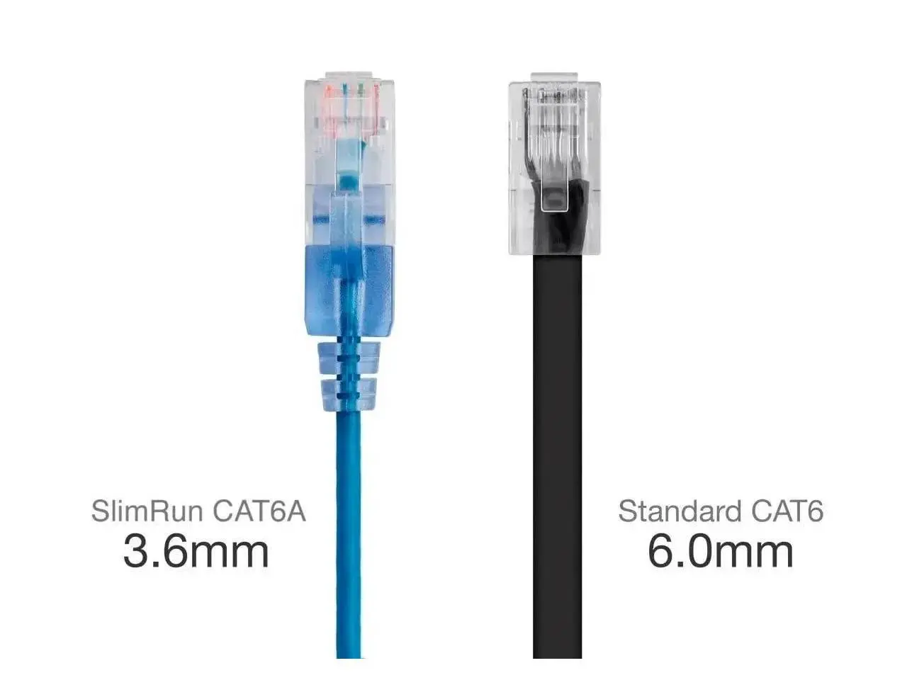 Monoprice's SlimRun cat6A is a small cable with big performance. With a cable diameter of almost half a standard cat6A cable, SlimRun cat6A is easier to route and saves valuable space in high density environments, such as data centers and telecommunications rooms. With SlimRun cat6A, you can fit more cables in the same space, saving you the time and cost of expanding or replacing cable pathways.