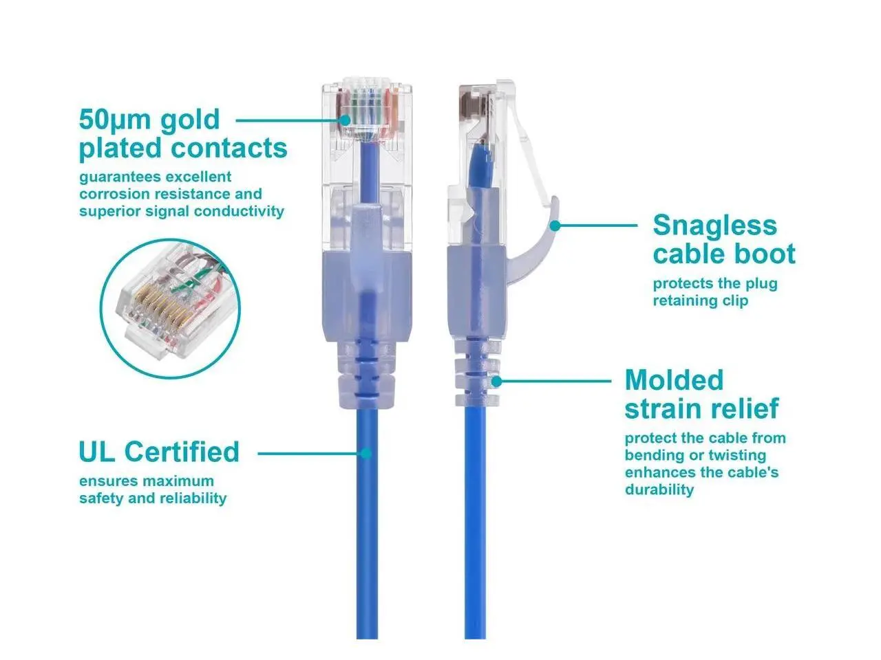 5. MONOPRICE CAT6A 7FT BLUE PATCH CABLE_ UTP_ 30AWG_ 10G_ PURE BARE COPPER_ SNAGLES