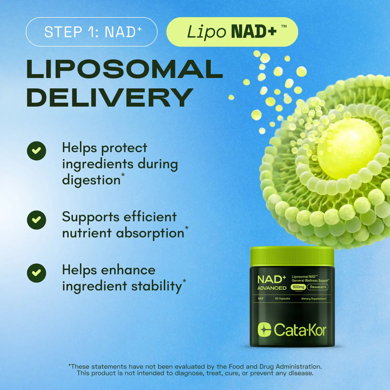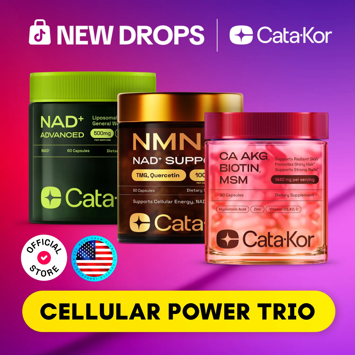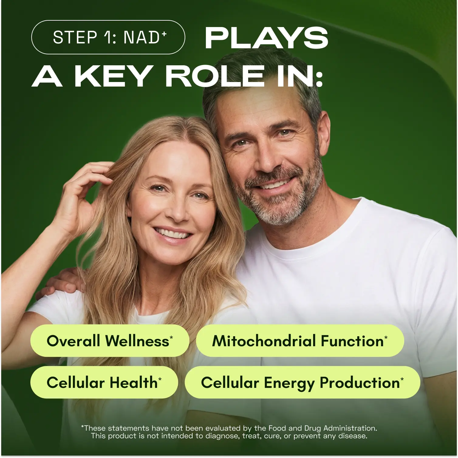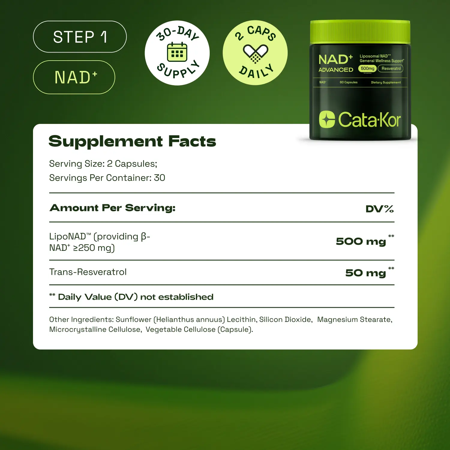 Featuring NAD 500, NMN, and Calcium-AKG, these clinically studied ingredients work synergistically to support natural NAD⁺ levels, mitochondrial function, and cellular resilience — key processes that naturally decline over time.