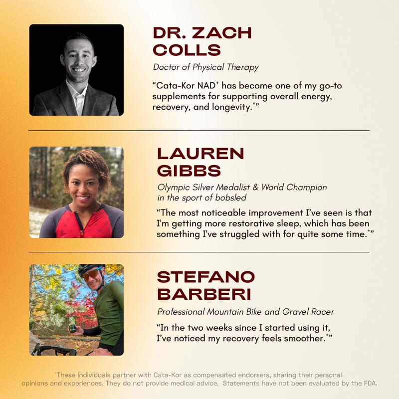Cata-Kor NAD⁺ Supplement is a complex blend designed to support NAD⁺ levels. It combines NMN, Quercetin, TMG, and Resveratrol.