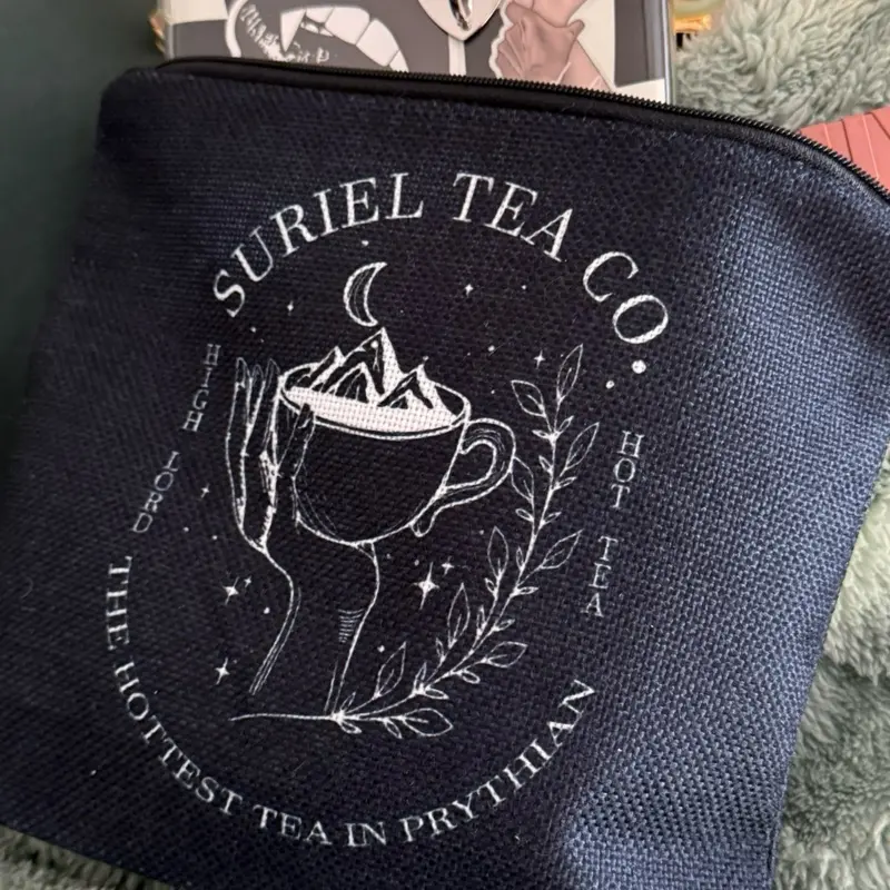 Celebrate your love of books with this suriel tea bag! Throw in your kindle, crystals, makeup, hair stuff, or really anything you need and take it on the go. This bag holds quite a bit of stuff!