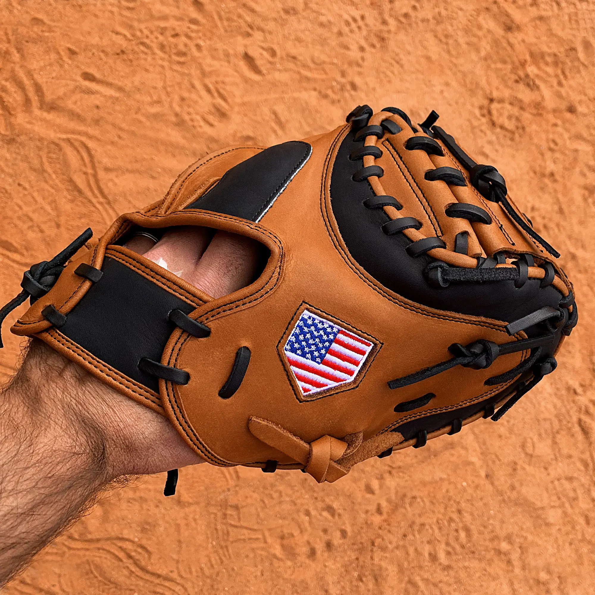 The tan and black colorway is sure to be the talk of the field. Perform your best knowing the handcrafted mitt on your hand is of the highest quality!