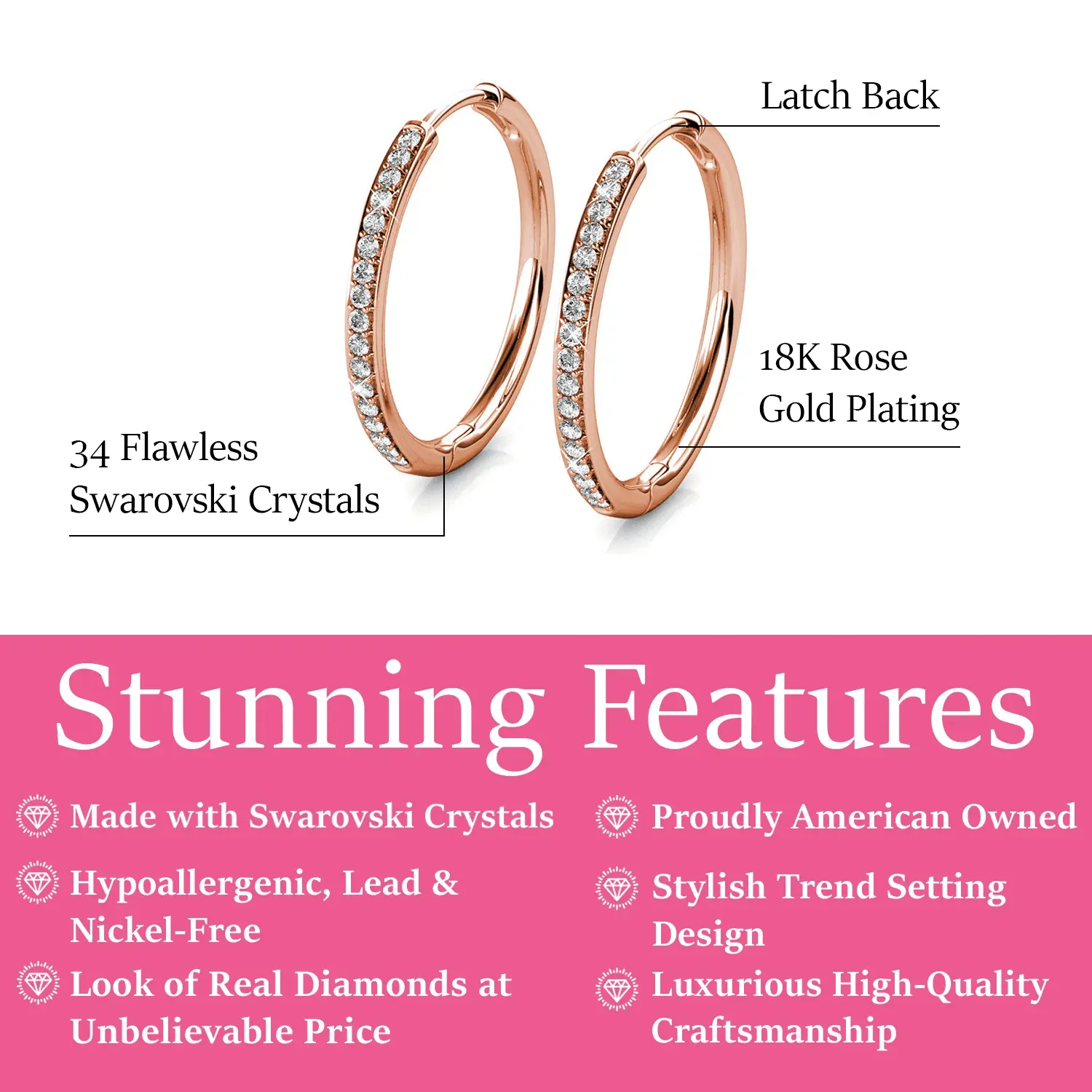 Classic with a modern twist, the Bianca hoop earrings are embellished with rows of simulated diamond crystals that shimmer beautifully from day to night. Lightweight and versatile, these earrings offer just the right amount of sparkle to complement any look—from casual chic to formal sophistication.