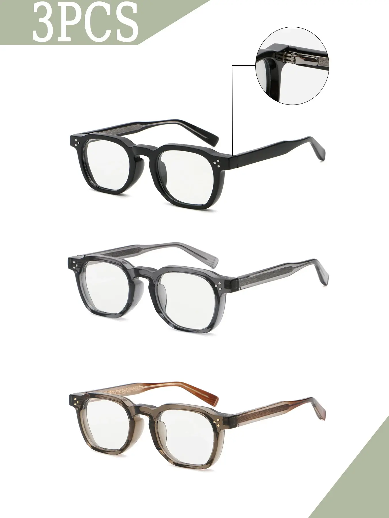🔹 3-pack square flat glasses, easy to swap for styling