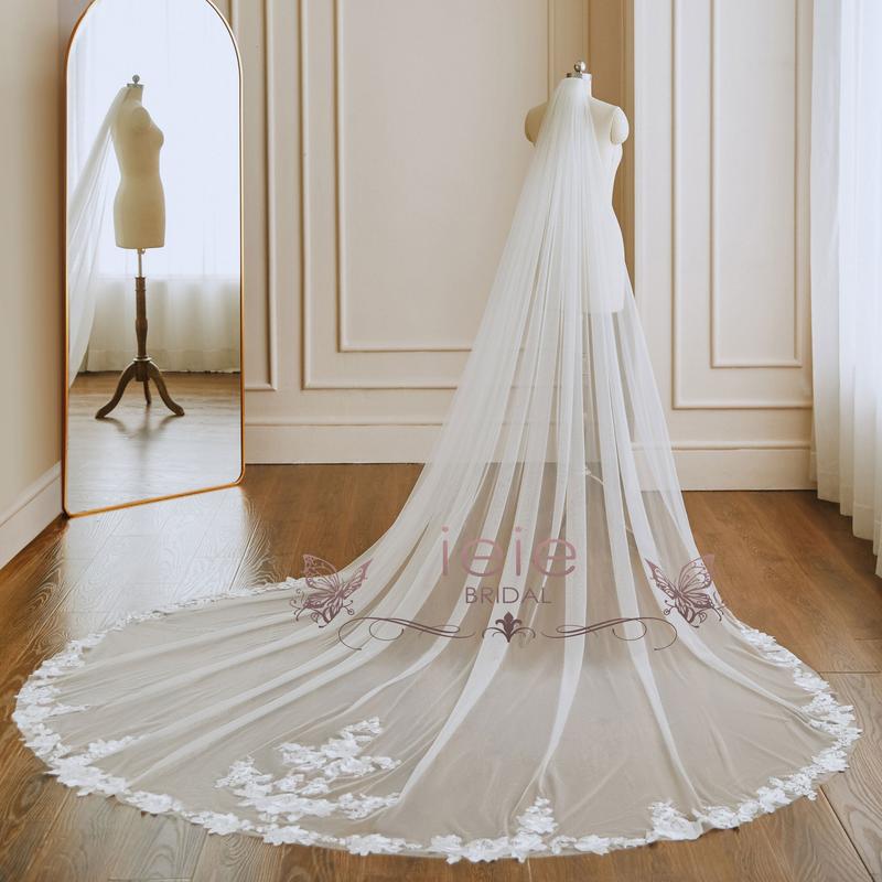 5. Cathedral Long Wedding Veil with Lace at Train VG3033