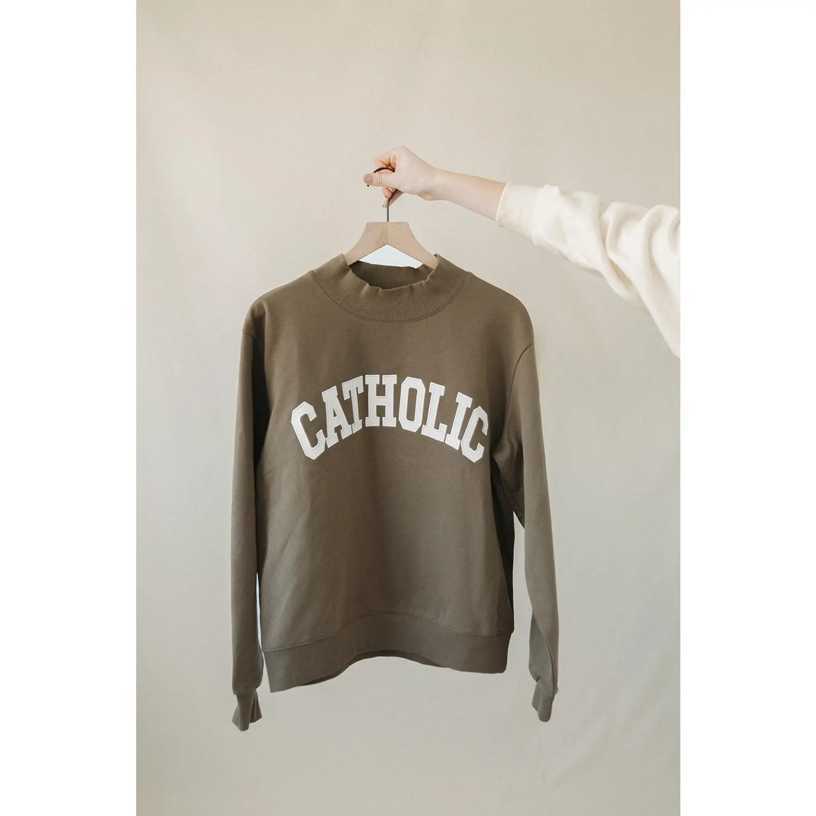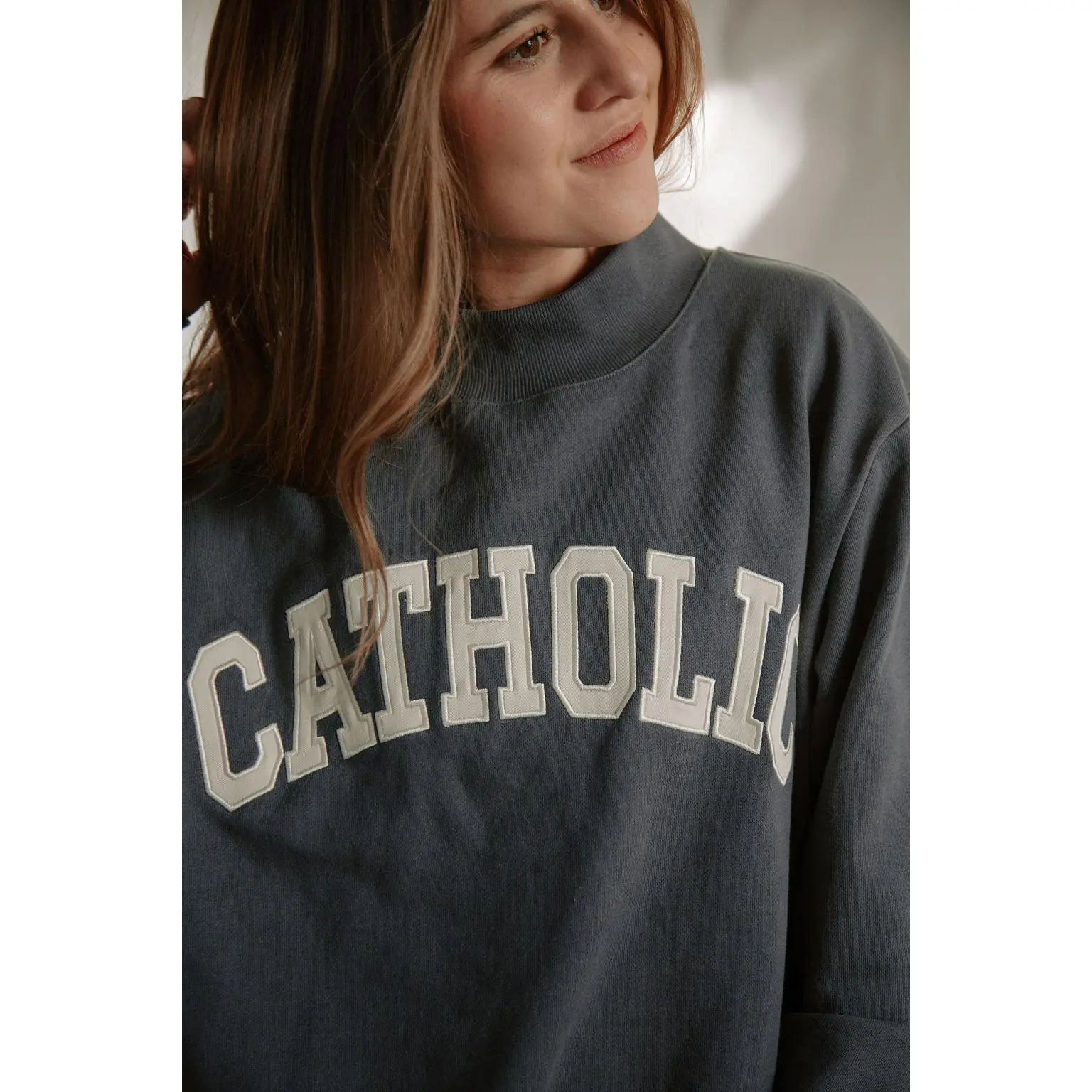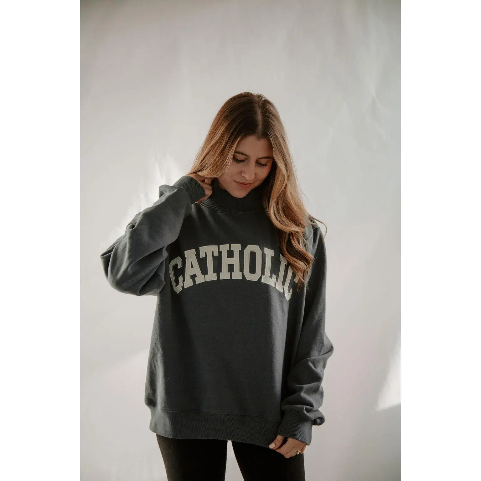 The Catholic Varsity Mockneck Sweatshirt is your new everyday essential — a premium, heavyweight oversized sweatshirt designed for comfort, warmth, and effortless style. Featuring a classic mockneck silhouette and vintage varsity-inspired embroidery, it’s the perfect blend of cozy and confident.