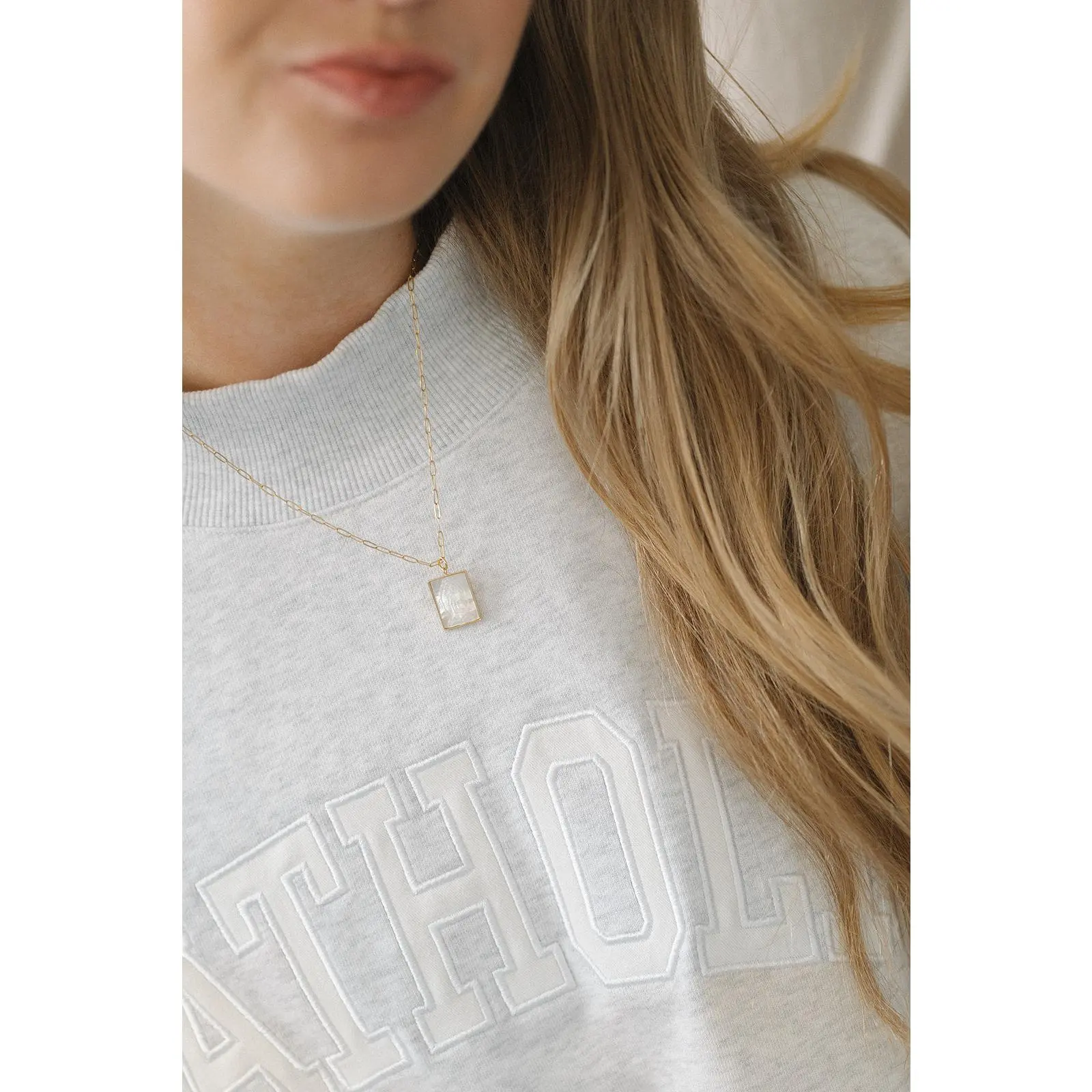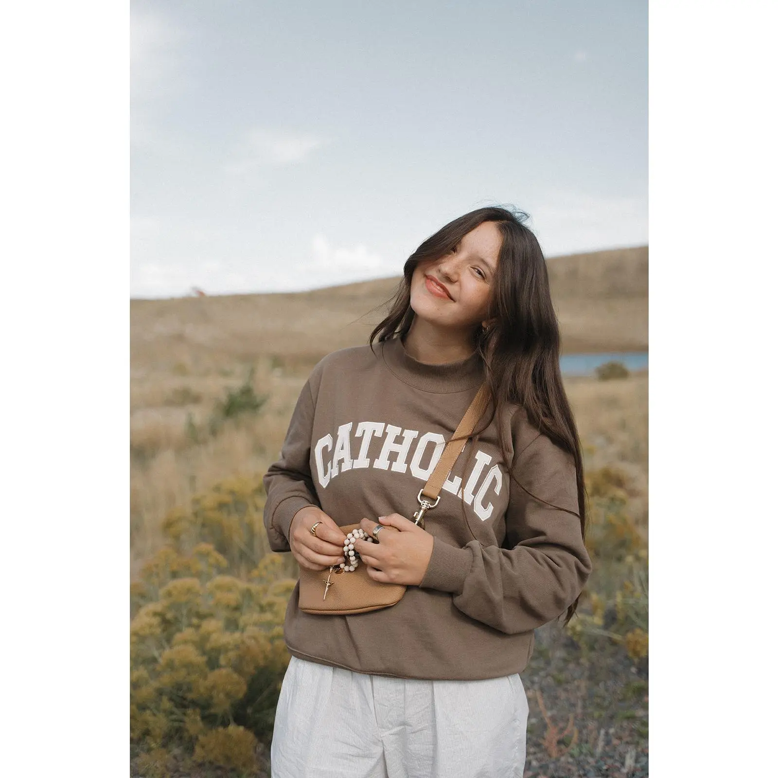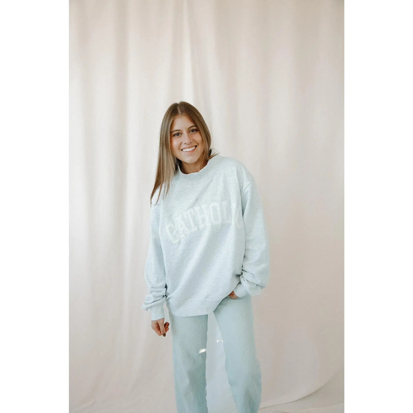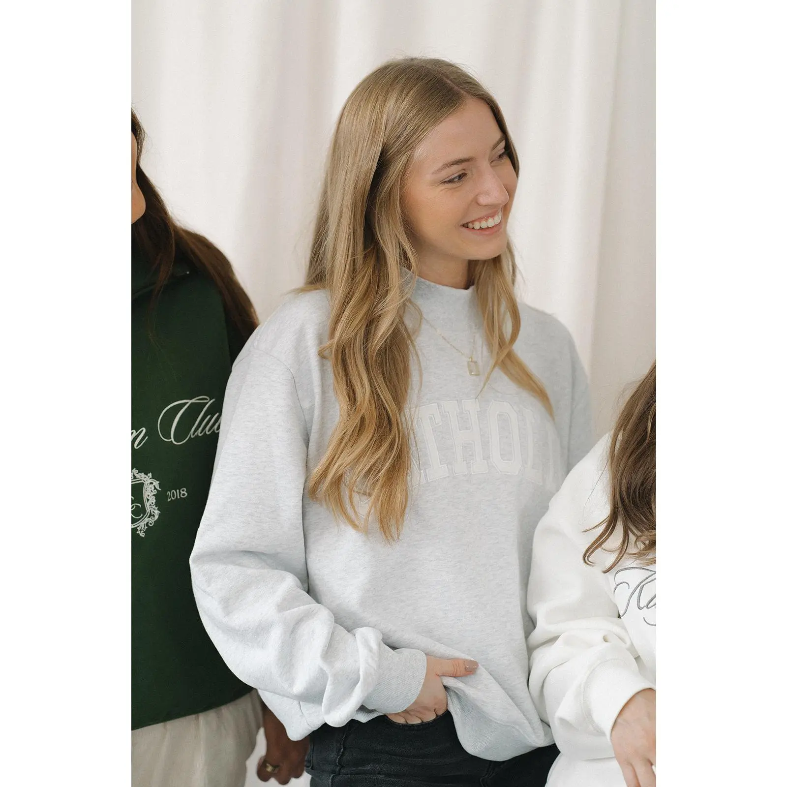 The Catholic Varsity Mockneck Sweatshirt is your new everyday essential — a premium, heavyweight oversized sweatshirt designed for comfort, warmth, and effortless style. Featuring a classic mockneck silhouette and vintage varsity-inspired embroidery, it’s the perfect blend of cozy and confident.