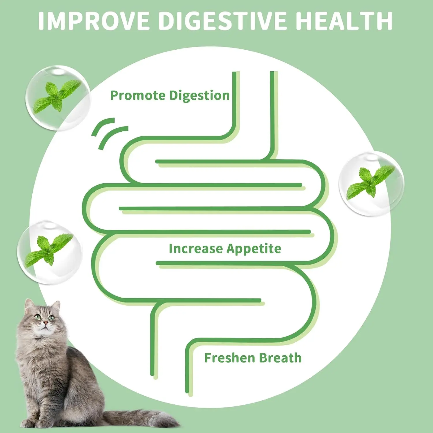 Catnip is natural safe herb for cats. Most cats get excited when exposed to catnip, followed by a calm bliss. Catnip contains dietary fiber that helps gastrointestinal motility, eliminates hairballs and improves digestion.