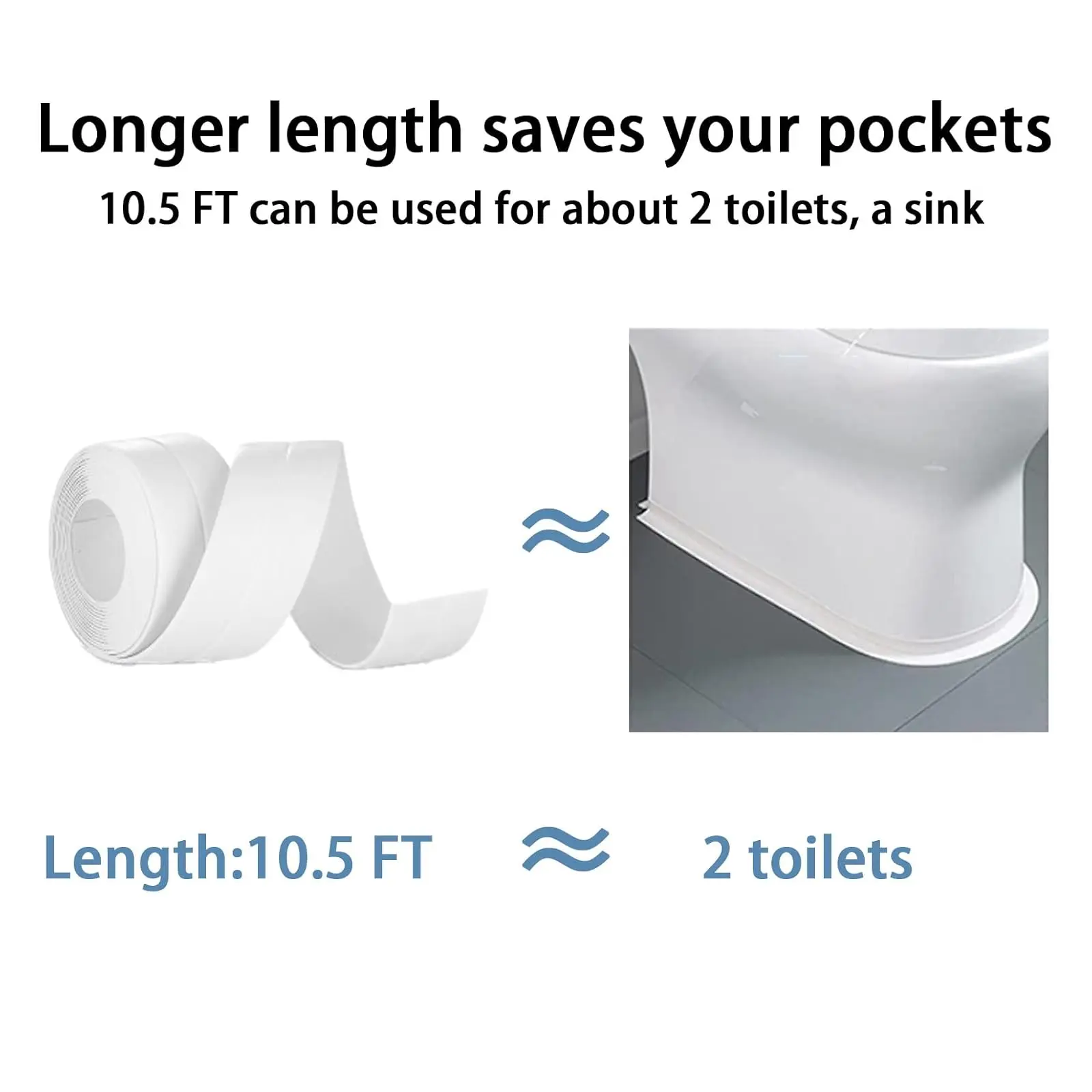 【Premium Caulk Tape】The 2 Rolls BLUEJUNWEI toilet caulk strip is made of high-quality PVC material, waterproof, Stronger adhesion. Each roll Width: 38mm/1.5 inch, 10.5 feet in length is enough to apply to your toilet. The caulking tape is thick, but quite flexible and a bit stretchy, conforms well to the curve around the front of the toilet pedestal.