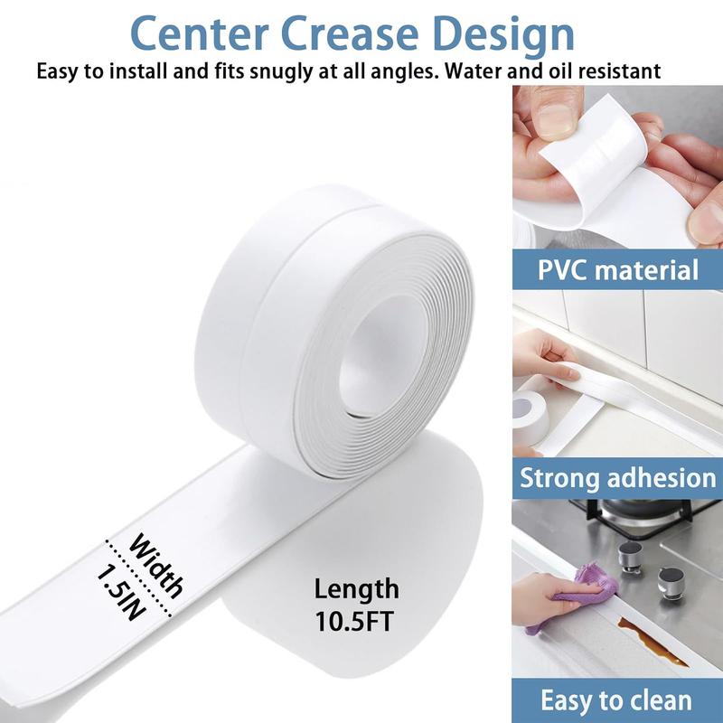 【Wide Application】The caulk tape waterproof self adhesive provides a clean water-tight finish on bath and kitchen edges to prevent water from seeping into the joints, Perfect for edges of toilets, bathtubs, floors, corners, walls, windows, sinks, etc.