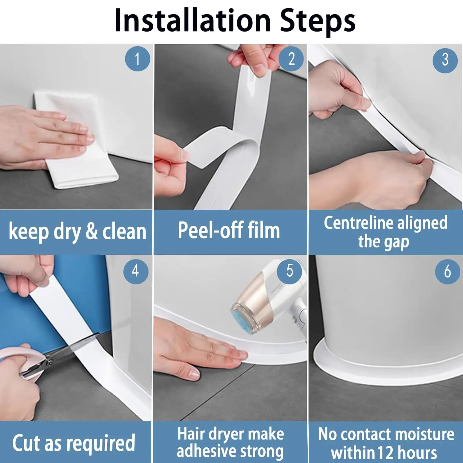 【Super Easy Install】- Compared to the traditional lousy caulking job,It took all of 5 to 10 minutes and the job was done! The peel-and-stick design promises convenient application without the mess of traditional caulk. A hair dryer is recommended for the installation process to reduce the air inside the tape and increase adhesion.