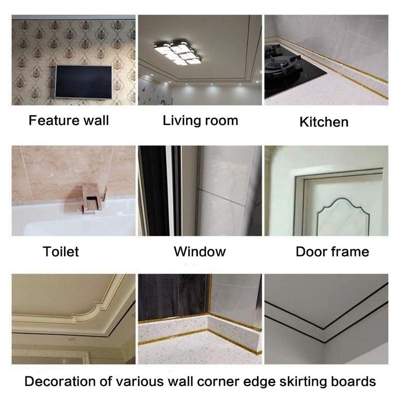·The flexible caulk molding trim strip is a versatile product that can be used on a variety of surfaces including tile, glass, plastic, marble and metal. It is perfect for various applications such as kitchen, living room, bedroom, mirror, picture frame, bathtub, sink, baseboard, floor, etc.